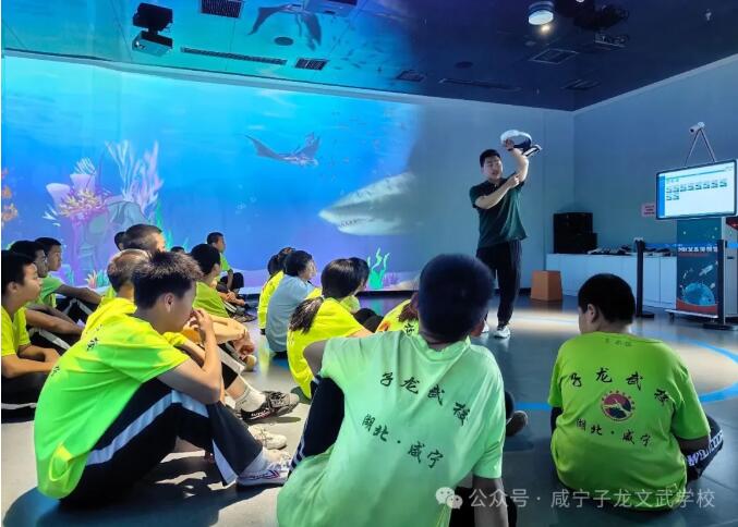 在科技馆内,我们的学生还为工作人员和游客们带来了一场精彩绝伦的武术表演。“少年负壮气,奋烈自有时。” 伴随着激昂的音乐,孩子们精神抖擞、动作整齐划一,一招一式尽显子龙文武学校的武术风采。刚劲有力的拳法、轻盈灵动的剑术、气势磅礴的棍术,赢得了现场观众的阵阵掌声和喝彩声。这不仅是一场武术展示,更是孩子们多年来刻苦训练的成果体现,展现了他们坚韧不拔的意志和积极向上的精神风貌。