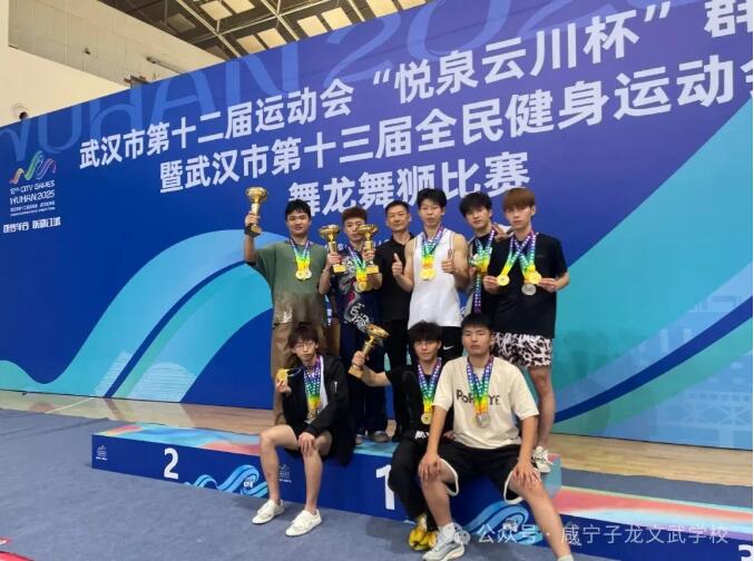锣鼓喧天,金狮腾跃!2025 年 6 月 8 日,武汉市第十二届运动会舞龙舞狮大赛于江汉大学体育馆打响,咸宁子龙文武学校舞龙舞狮队凭借惊艳表现,一举斩获一等奖!这份荣耀,既是千年武魂的传承,更是队员们日夜拼搏的见证。