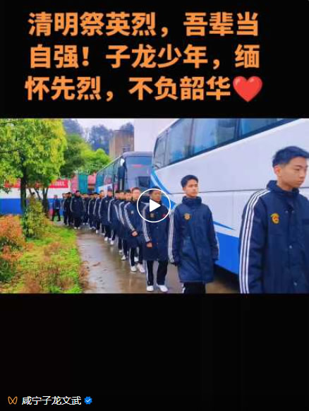 青山埋忠骨,英魂永不朽;少年承壮志,武魂代代传。此次清明祭扫活动在庄严的氛围中圆满结束,短短一程,却让红色种子深深扎根在每一位学子心中。未来,咸宁子龙文武学校将持续开展红色教育活动,把英烈精神融入教学与训练日常,激励全体师生以英雄为标杆,承红色基因,铸少年武魂,以勤学苦练砥砺前行,以赤子之心报效家国,让英雄精神在新时代薪火相传!