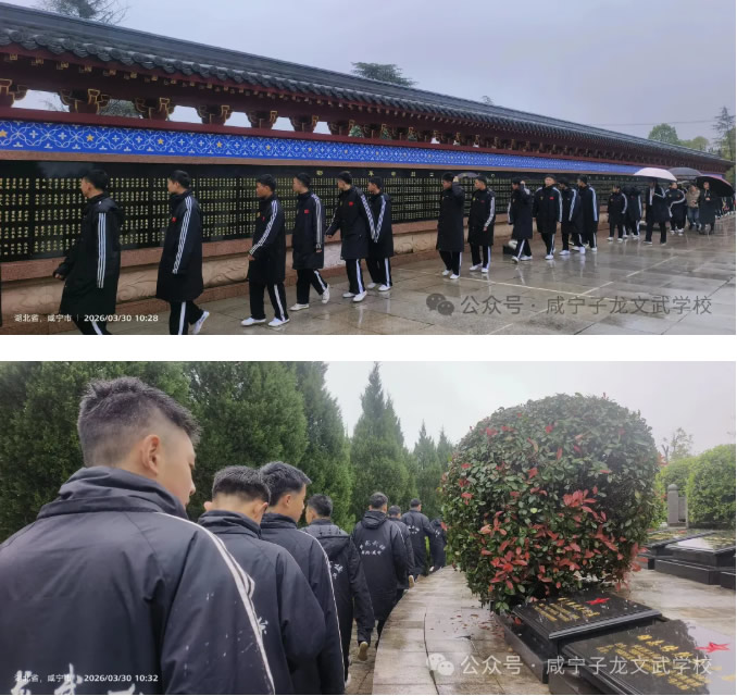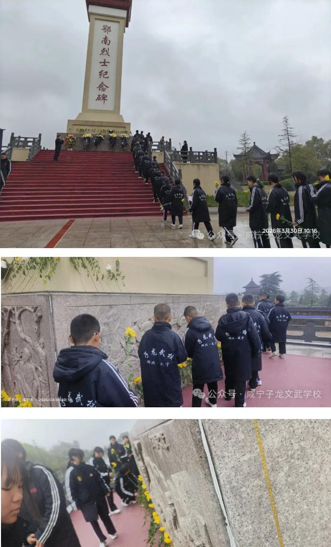又是一年清明至,哀思绵绵寄英烈。为铭记革命历史,传承红色基因,将爱国情怀与武术精神深度相融,培育学子家国担当,3月30日,咸宁子龙文武学校全体师生,怀着无比崇敬的心情,齐聚烈士陵园,开展清明祭扫主题活动,以武校少年的赤诚敬意,缅怀革命先烈,赓续红色血脉。